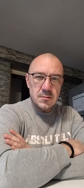 48 ans, chauve assumé, regard bleu qui te transperce.